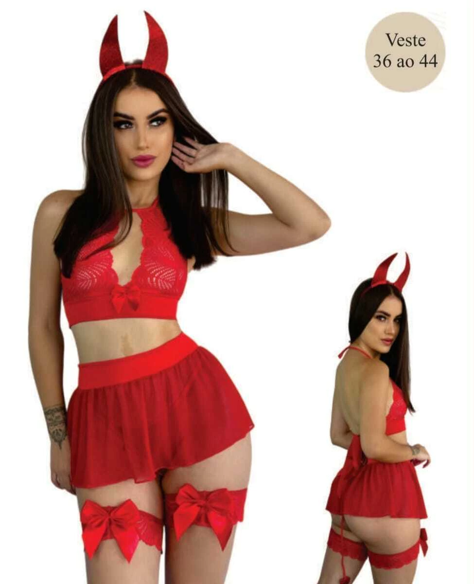 Fantasia Sexy Luxo - Diabinha Desperte seu lado mais provocante com a Fantasia Sexy Luxo Diabinha! Confeccionada com materiais de alta qualidade, essa fantasia é perfeita para momentos especiais e cheios de sedução. Seu design elegante e sensual valoriza as curvas, proporcionando conforto e estilo.