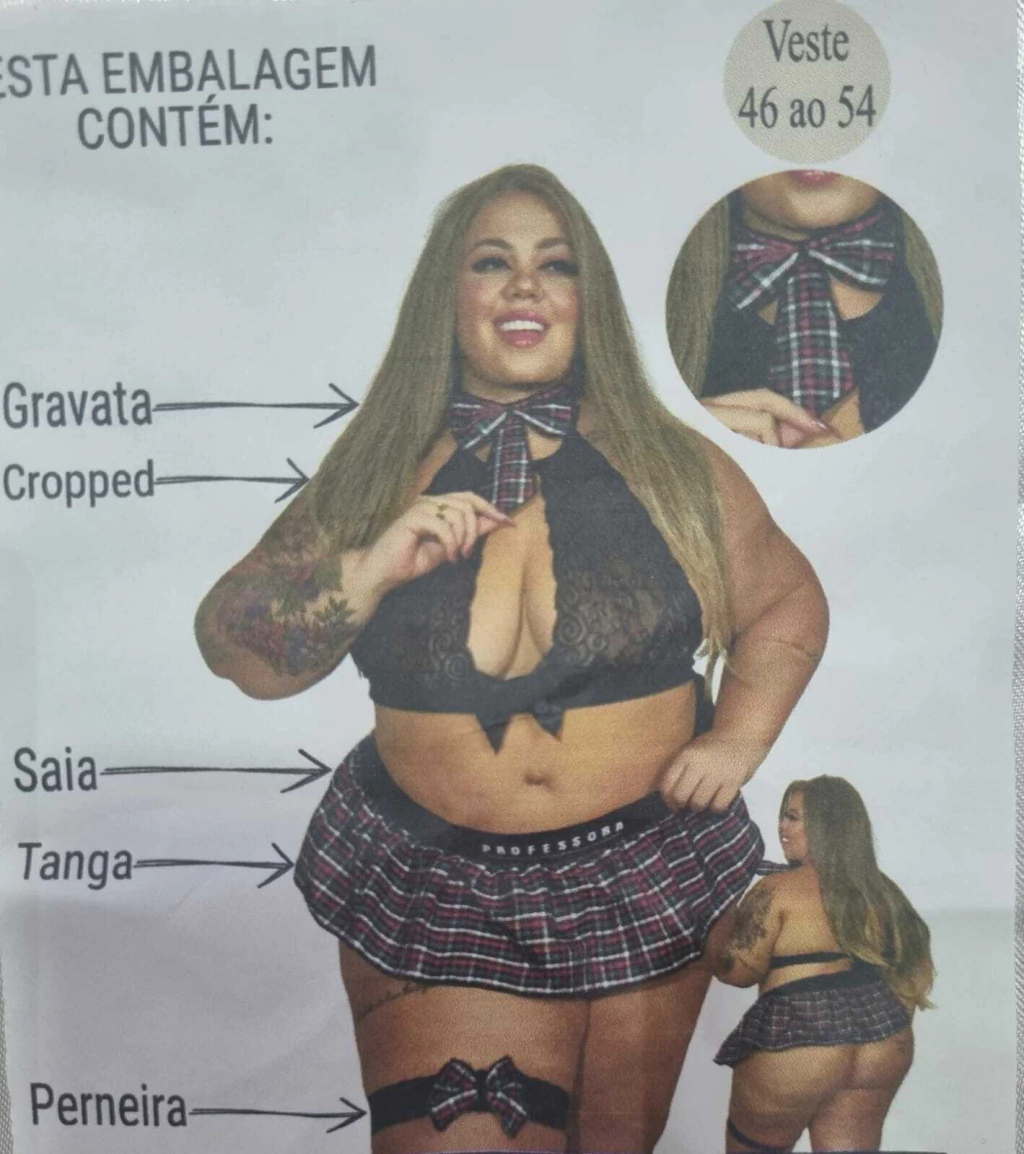 Fantasia Sexy Luxo Plus Size - Professora: realce sua sensualidade com esta fantasia especialmente desenvolvida para mulheres plus size. Confeccionada em tecido de alta qualidade, garante conforto e caimento perfeito. Ideal para ocasiões especiais, oferece um visual sofisticado e provocante, com detalhes que remetem ao charme da professora.