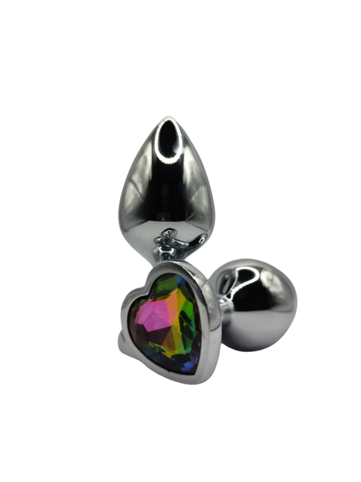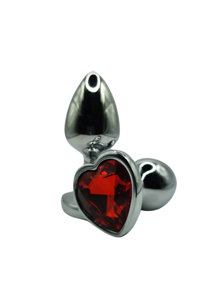 Plug anal de luxo em aço inoxidável possui forma cônica e um detalhe extremamente lindo de pedra lapidada em formato de coração na sua base.